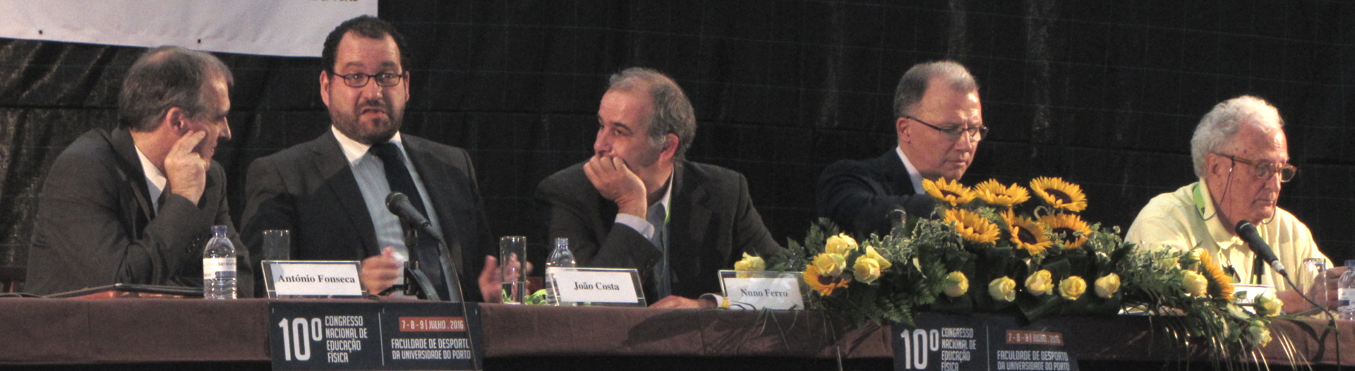 Diretor da FADEUP, António M. da Fonseca; Secretário de Estado da Educação, João Costa; Presidente da SPEF, Nuno Ferro; Presidente da CNAPEF, Avelino Azevedo; Presidente da Comissão da Educação, Ciência e Cultura da Assembleia da Republica, Alexandre Quintanilha.