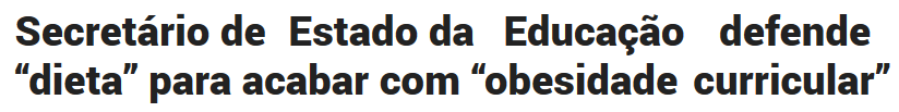 O Secretário de Estado da Educação defendeu também neste encontro, a necessidade de “fazer dieta” para acabar com a atual “obesidade curricular” que impede o cumprimento de programas e a consolidação do conhecimento [a obesidade curricular ≡ empreitada educativa ≡ escola a tempo inteiro].