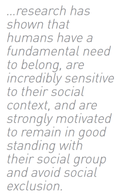 Naomi I. Eisenberger, Matthew D. Lieberman, Kipling D. Williams (2003) realizaram uma investigação sobre a Exclusão Social recorrendo a imagens de ressonância magnética do cérebro para determinar se “magoa” as pessoas. (…) Este estudo de neuroimagem examinou os correlatos neuronais relativos à exclusão social e procuraram determinar se a hipótese das bases neuronais da dor social são semelhantes às da dor física (…). Devido à importância dos laços sociais construídos para garantir a sobrevivência da maioria das espécies de mamíferos, o sistema de ligações sociais pode ter adotado a computação neuronal do ACC (Anterior Cingulate Cortex), Resumindo, o padrão de ativação que emergia durante a experiência de exclusão social, era muito semelhante ao encontrado nos estudos relacionados com a dor física, fornecendo os argumentos para se afirmar que a experiência e regulação da dor física e social partilham uma base neuroanatómica comum. Mais significativo ainda é o facto dos correlatos neuronais da dor social serem também ativados pela mera antecipação de indicadores que possam indiciar uma situação de potencial exclusão, mesmo na ausência de exclusão factual .