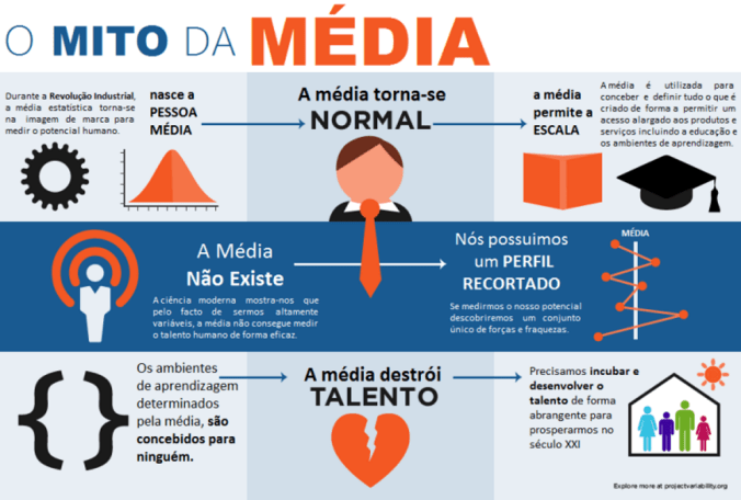 No caso da escola, temos o mesmo problema: se desenhamos um ambiente de aprendizagem para a média, fazemo-lo para ninguém!Todd Rose