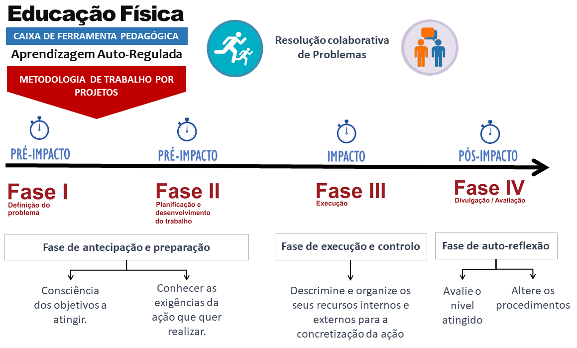 - Fase de execução e controlo: os alunos põem em ação os processos ou estratégias que acompanham a concretização do plano delineado anteriormente e que ajudam a dirigir a ação.