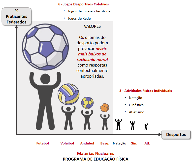 Como referi no artigo anterior “E se não houvesse bolas!… Como seria a Educação Física?!…“, “os níveis de raciocínio moral sobre os dilemas do desporto são significativamente mais baixos do que os níveis de raciocínio sobre os dilemas da vida (e a Educação Física prepara os alunos para os dilemas morais da vida). Se a estrutura do desporto competitivo, aceite na nossa cultura, e que colonizou a disciplina de EF, encoraja a procura do interesse próprio ao mesmo tempo que desencoraja o diálogo moral, então os dilemas do desporto próprios dos jogos desportivos coletivos (matérias nucleares) podem provocar níveis mais baixos de raciocínio moral como respostas contextualmente apropriadas (no contexto do jogo), mas desapropriadas para os dilemas da vida. Ou seja, as matérias nucleares que utilizamos nas aulas de EF empobrecem (limitam) o raciocínio moral dos alunos.