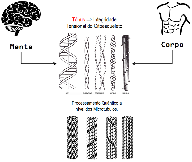 Ou seja, existe uma ligação entre os pensamentos (dimensão intangível) e a nossa biologia através da bioquímica celular. Estes peptídeos programam o comportamento celular. Estes estímulos acionam diferentes conformações do citoesqueleto (integridade tensional), que por sua vez desencadeiam respostas comportamentais celulares específicos em função dos sinais moleculares (peptídeos). Esta é, de forma muito sucinta, a explicação científica para o Tónus, uma ligação entre o psiquismo e a biologia.