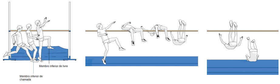 | Fase Aérea | A barra a ser transposta não é fixa e cairá em caso de contacto. Não se trata de transpor um obstáculo, mas simplesmente de elevar o corpo à maior altura possível. | O obstáculo a ser superado é mais ou menos fixo ou rígido; pode ser transposto com apoio dos pés, mãos ou corpo. |