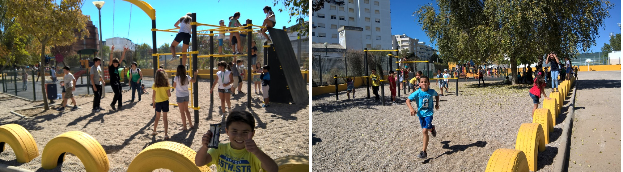 - Numa terceira fase, não só introduzi o parkour como forma de trabalhar a aptidão física (circuitos) como adaptei as aulas de ginástica e também fundamentei um projeto na Escola Básica Fernando Casimiro Pereira da Silva intitulado “(Re)Animar Pneus, as Emoções na Aprendizagem – Projeto parque de parkour na Escola”. A escola candidatou-se ao Prémio Inov.ação que tinha como objetivo premiar grandes “ideias verdes”, novos serviços, produtos ou tecnologias relacionadas com os pneus usados ou materiais derivados da sua reciclagem. O Jurí era composto por pessoas de reconhecido mérito do meio empresarial, artístico/ cultural e académico, entidades públicas relacionadas com o ambiente e do sistema científico. O Projeto foi premiado e a escola recebeu o Prémio do melhor projeto tendo recebido 5.000€. A Escola, na pessoa do seu Diretor, Paulo Almeida, rapidamente negociou com a Câmara Municipal de Rio Maior a construção do parque de Parkour num espaço que foi requalificado para o efeito. Os nossos corpos desenvolvem uma resposta somática e afetiva (emocional) relativamente aos espaços arquitetónicos, e esta resposta surge em função do acoplamento mente/cérebro/corpo/edifício que corresponde ao tempo e espaço da habitabilidade do edifício escolar. Se as escolas são espaços de enclausuramento e os alunos são simultaneamente incluídos e excluídos através de determinadas práticas corporais espaciais, devemos interrogar a estrutura material do edifício em si como um local de contestação da identidade. Os aspetos do espaço estão fortemente ligados à identidade porque definem quem tem o direito de ocupar um determinado espaço ou quem pode estar desenquadrado (fora do seu lugar). A investigação nesta área pode transformar tanto as práticas da arquitetura das escolas e as práticas de ocupação destes edifícios. Se a arquitetura organiza, hierarquiza e sistematiza as nossas atividades, e se muito do nosso comportamento é definido como desviante relativamente à forma como nos recusamos, então parece ser urgente redefinir os espaços para que o ambiente dos edifícios defina uma participação legítima de todos, que seja inclusiva e dialógica. O parque de parkour surge como resultado desta reflexão, desta necessidade de devolver às crianças e jovens os espaços da escola com funcionalidades que lhes permitam realizar determinadas necessidades básicas tais como o brincar, o interagir socialmente e emocionalmente com os seus corpos, com os outros e com os espaços que as rodeiam. Tal como outros edifícios, as escolas são produtos do comportamento social.