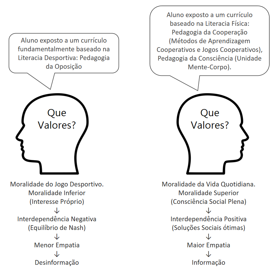 Na segunda década da minha carreira como professor de Educação Física comecei a investigar esta quarta corrente que me pareceu muito mais interessante, apelativa e importante aplicar nas aulas de Educação Física. Questionei-me na altura sobre o motivo que levou os criadores dos PEF (Programas de Educação Física) a optar pelo segundo e terceiro referenciais axiológicos como alicerces para a sua construção: