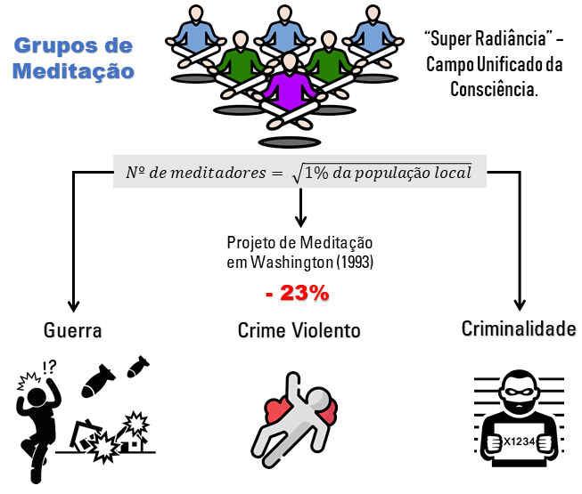 A “tecnologia da meditação” da cultura Védica a qual afirma que todos os tipos de violência social e conflito possuem uma origem comum. A tensão e o stress social advém do medo o qual gera hostilidade entre as fações, nações, religiões e até entre civilizações competitivas. É este stress e desordens sociais que está na origem do crime violento, guerra e terrorismo. A comunidade médica, fundamentada por centenas de estudos científicos, aceitou o facto da meditação constituir um processo que acalma esta tensão, stresse e hostilidade no indivíduo. Mais recentemente, alguns estudos demonstraram que quando um grupo grande de meditadores se junta com a intenção de beneficiar a sociedade, criam o mesmo efeito tranquilizador e calmante numa comunidade mais alargada.