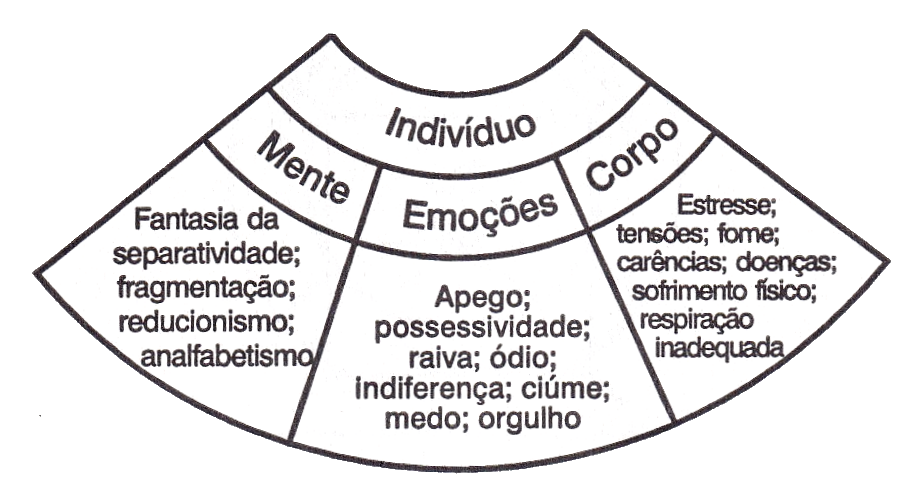 A visão ou consciência holística implica um alargamento progressivo das fronteiras humanas. Começamos pela pessoa, cujas características egocentradas diminuem quando ela se abre para a sociedade em que vive.