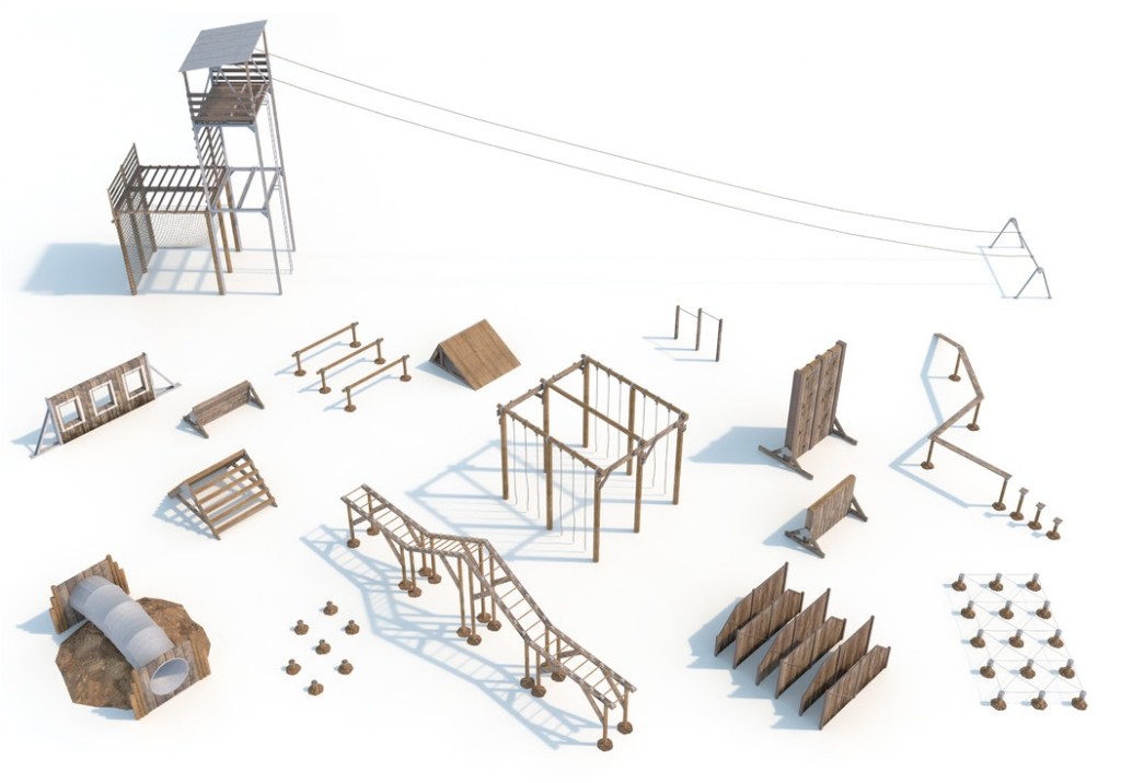 Quem tem experiências em Aparelhos de Cordas e Montagem de Obstáculos recorrendo a material de escalada, torna-se uma mais-valia e facilita bastante. Pode-se utilizar toros de madeira em bruto para se fazer construções em madeira com as configurações que se pretende para os obstáculos.