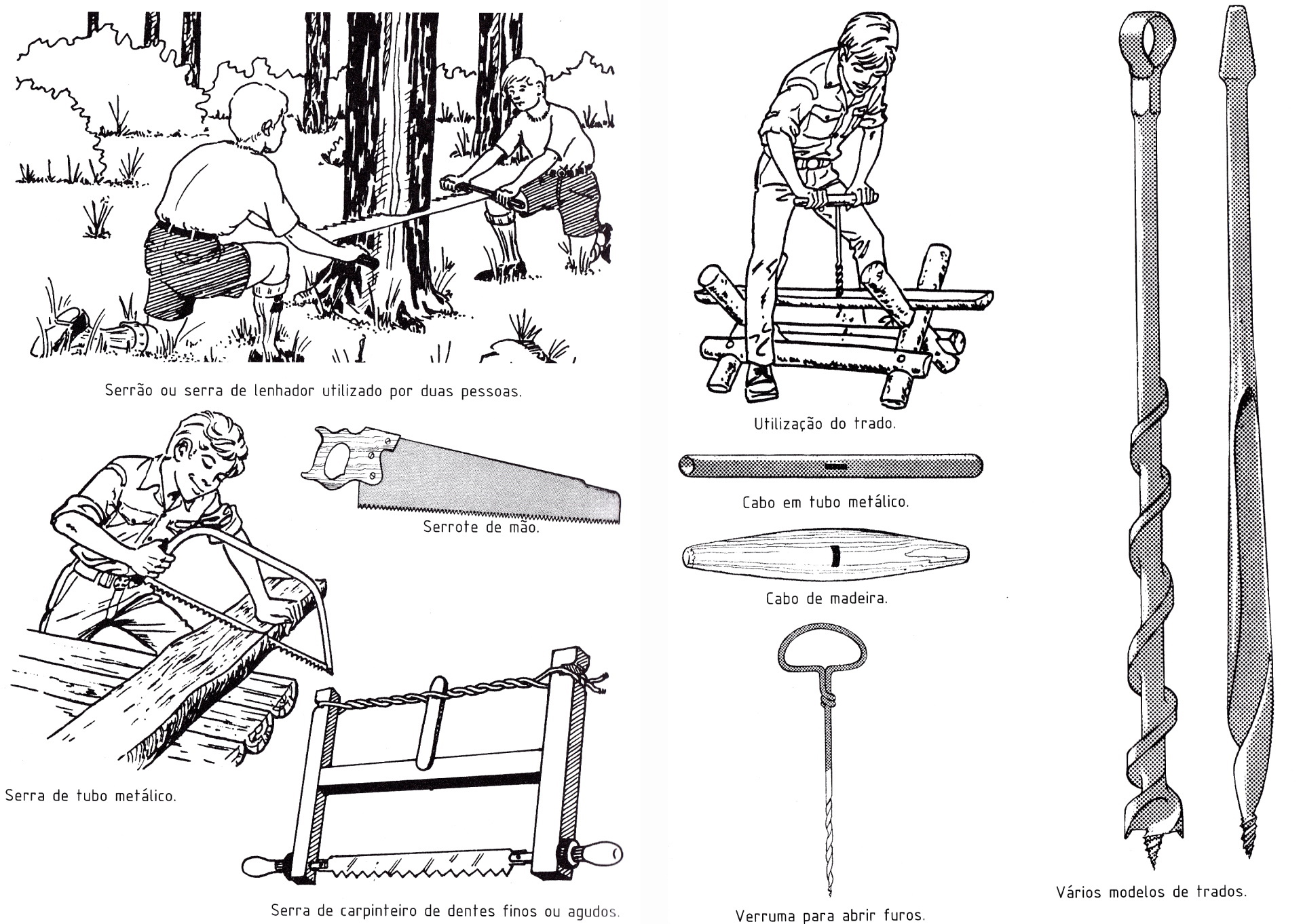 - Podemos unir os toros de madeira sem entalhes ou encaixes, apenas recorrendo ao botão em esquadria ou botão em cruz, porém a construção fica temporariamente robusta. A corda de sisal permite realizar nós robustos (amarrações) mas se estiver exposta à humidade apodrece. Por outro lado, as dilatações e contrações da madeira, devido às variações de temperatura e humidade também criam folgas nos nós deixando a construção frágil e instável.