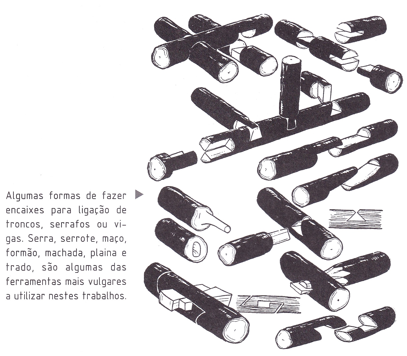 - Podemos utilizar diferentes formas de entalhe na madeira, recorrendo a serrote e formão para encaixar os toros de madeira e criar o obstáculo pretendido.