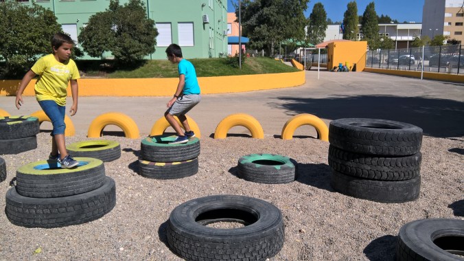- A sua aquisição não tem custos. Apenas temos que garantir o transporte dos pneus usados do local de recolha (Oficinas de recauchutagem) até ao recinto da escola.
