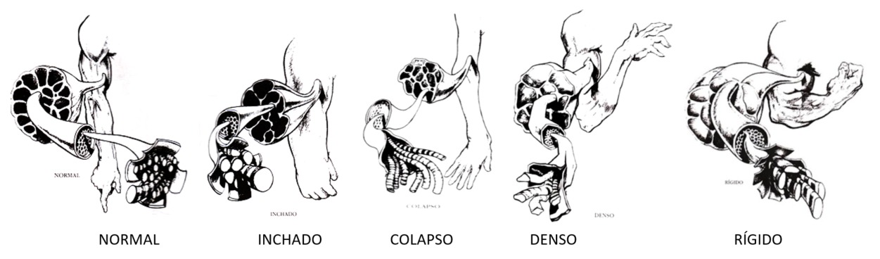 Cada um destes estados, no seu modo próprio, afetam a ação bombeadora do músculo. Os músculos rígidos têm dificuldade para se contrair e músculos densos para se expandir. O organismo acaba por se tornar inflexível. Os músculos inchados ou em colapso não conseguem prover os limites que ajudam a gerar pressão ou a mantê-la. O organismo extravasa ou entra em colapso.